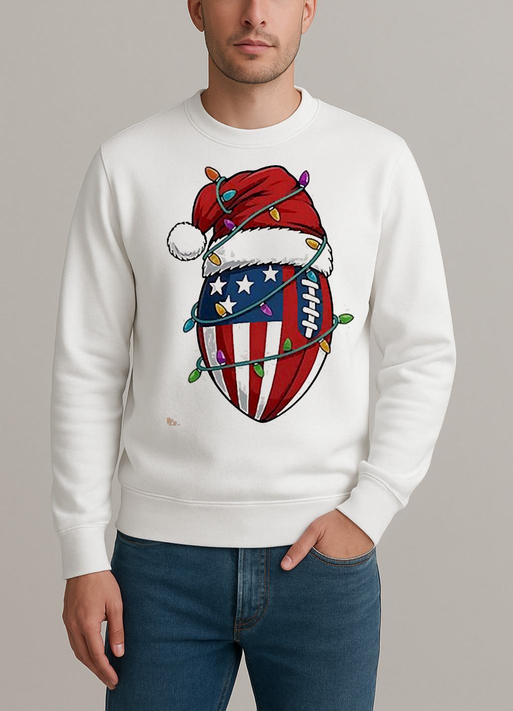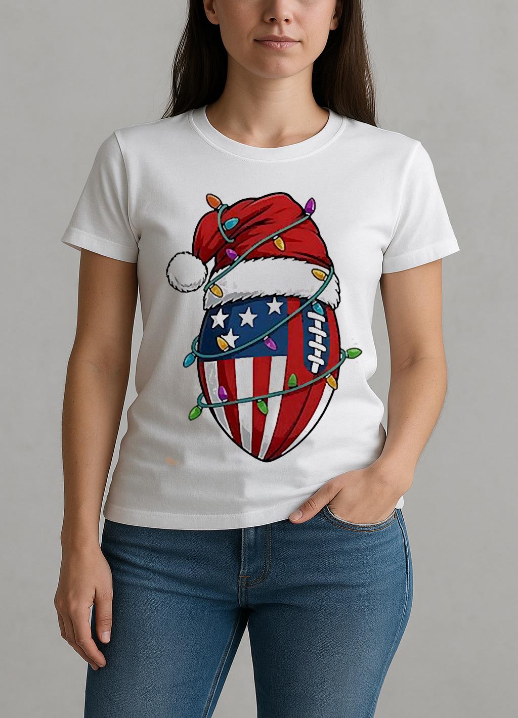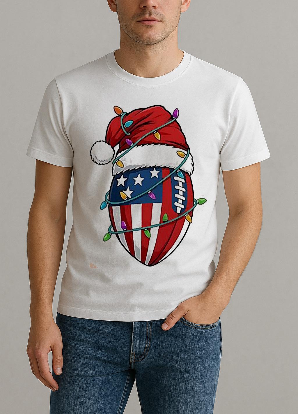 Whether you’re out with friends or capturing the perfect streetwear vibe, our American Flag Football Light Christmas Hat Shirt combines effortless style with modern attitude, letting you stand out, stay comfortable, and make every moment your own.