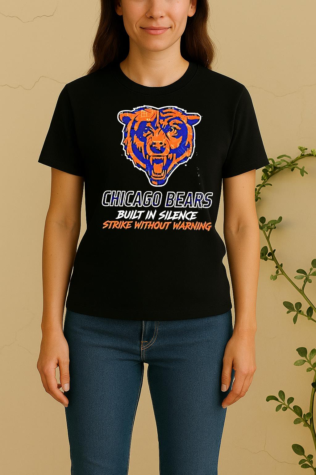 The standout feature of the Chicago Bears Built In Silence Strike Without Warning Shirt is its exclusive custom artwork, printed with eco-friendly inks to ensure long-lasting vibrancy and detail. Every element reflects confidence, creativity, and individuality.