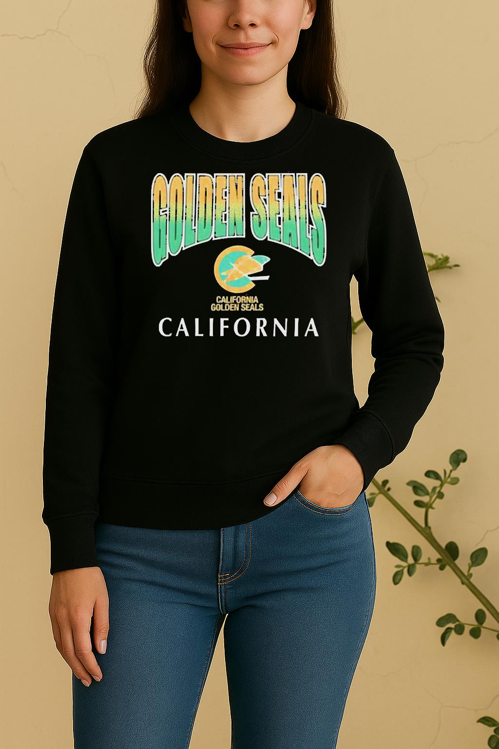 Pair your Cute California Golden Seals Vintag Sweep Down Shirt with jeans, joggers, or a jacket for a trendy, effortless look. Perfect for casual outings, creative events, or as a thoughtful gift for a fashion-forward friend.