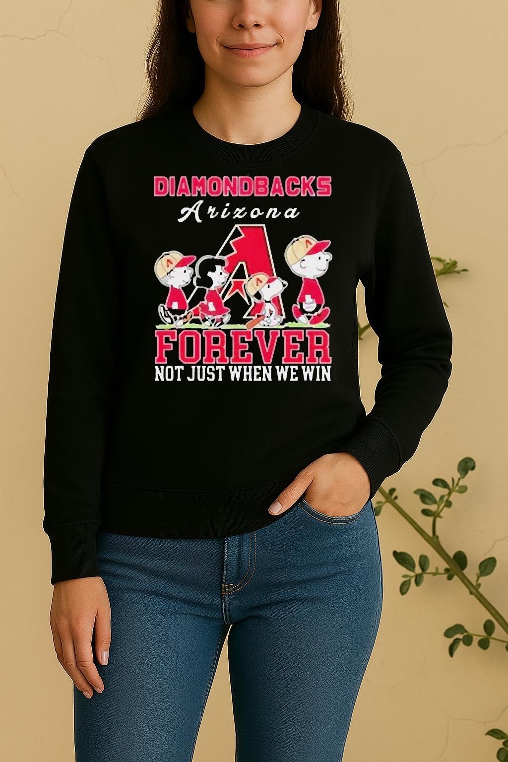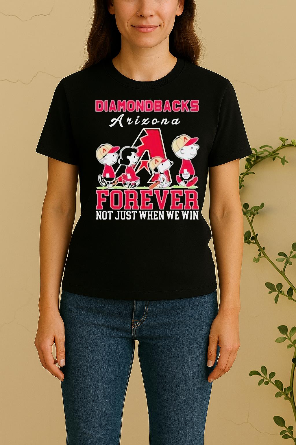 Each Cute Snoopy And Charlie Brown Arizona Diamondbacks Baseball Forever Not Just When We Win Shirt is made from soft, breathable cotton and a durable fabric blend that feels gentle on the skin. The high-quality print ensures vibrant colors that won’t fade after washing. Lightweight, flexible, and built for comfort — ideal for all-day wear.