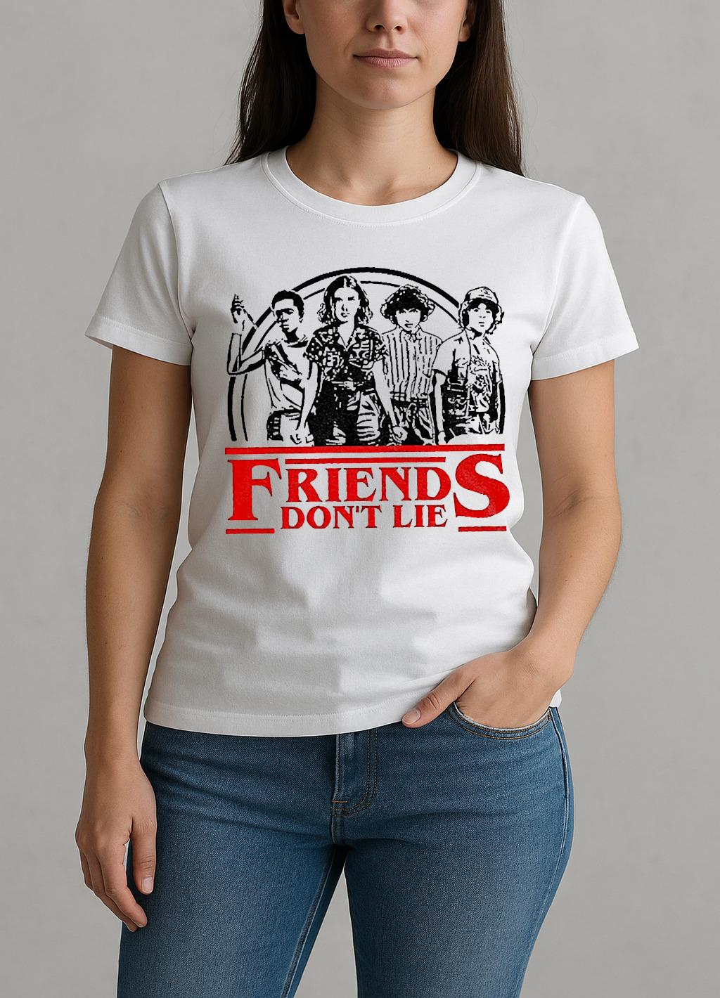 Whether you’re out with friends or capturing the perfect streetwear vibe, our Friends Dont Lie Retro Stranger Style Quote Shirt combines effortless style with modern attitude, letting you stand out, stay comfortable, and make every moment your own. Use coupon “10OFF” to get 10% off total order value if over 75 USD.