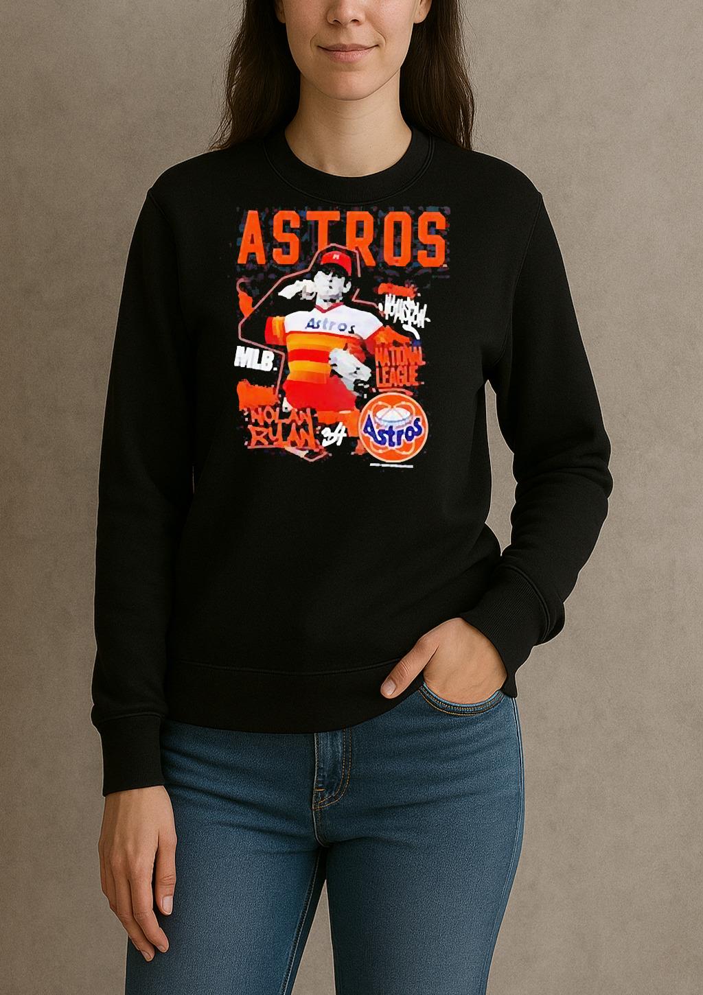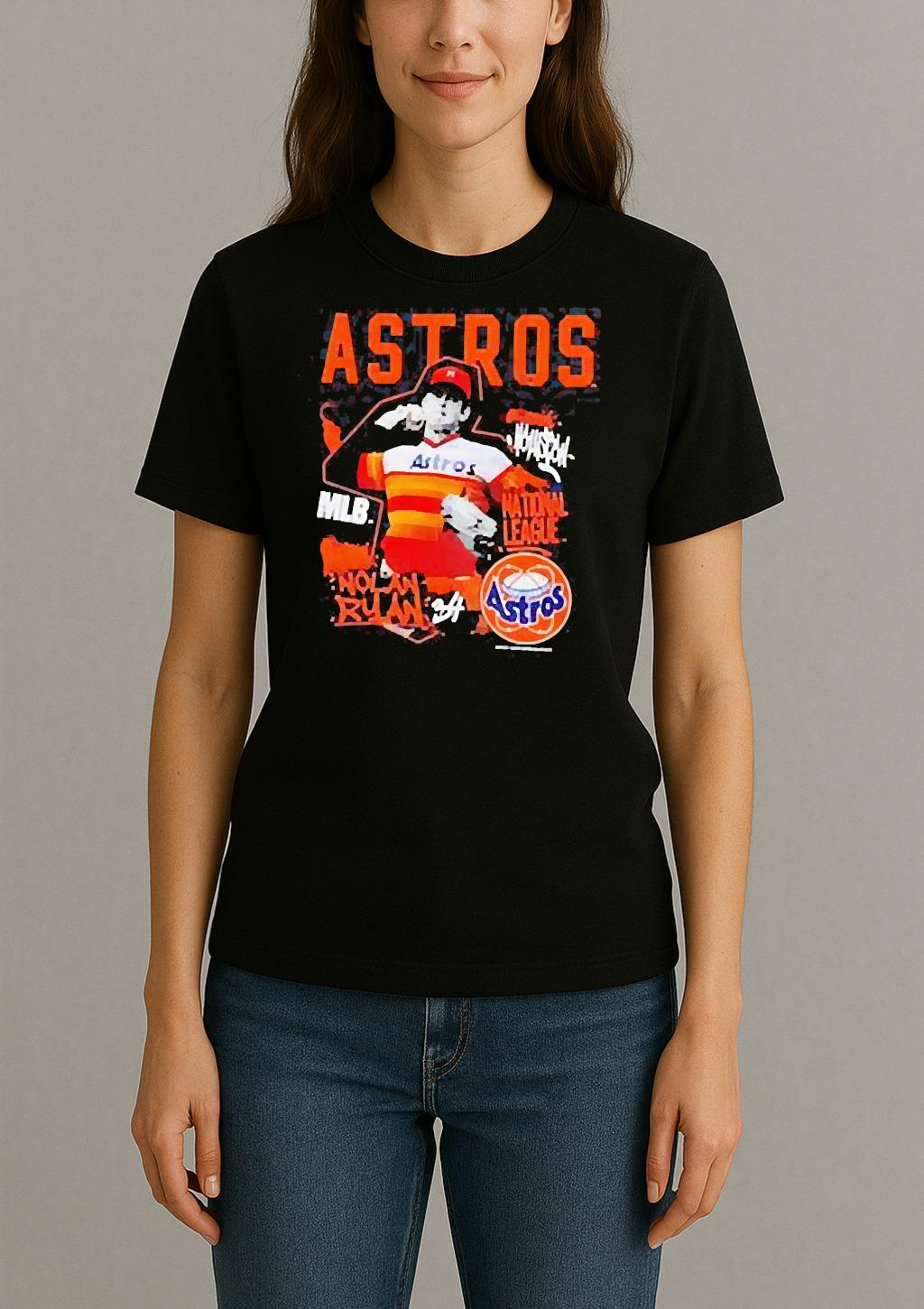 Pair your Houston Astros Nolan Ryan Cooperstown Star Moment Shirt with jeans, joggers, or a jacket for a trendy, effortless look. Perfect for casual outings, creative events, or as a thoughtful gift for a fashion-forward friend.