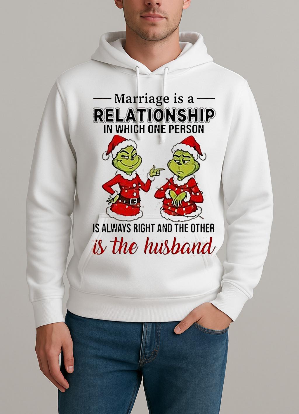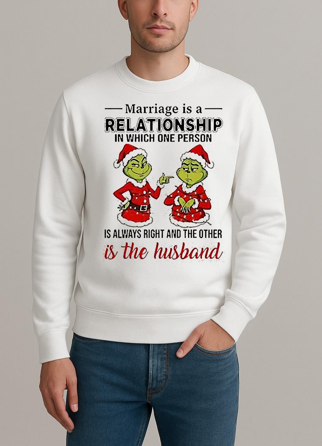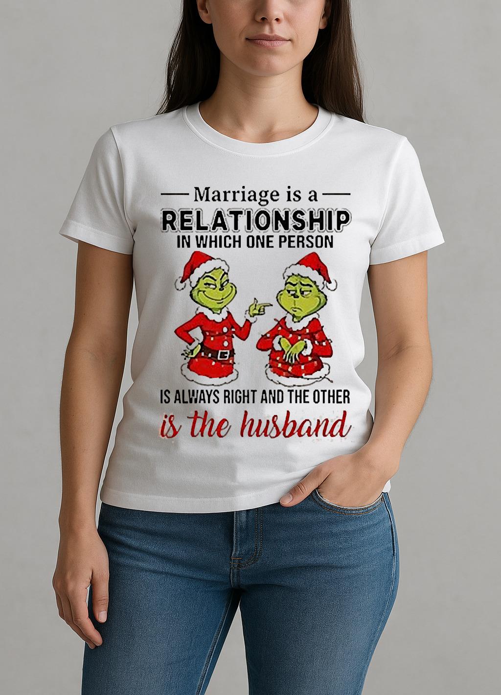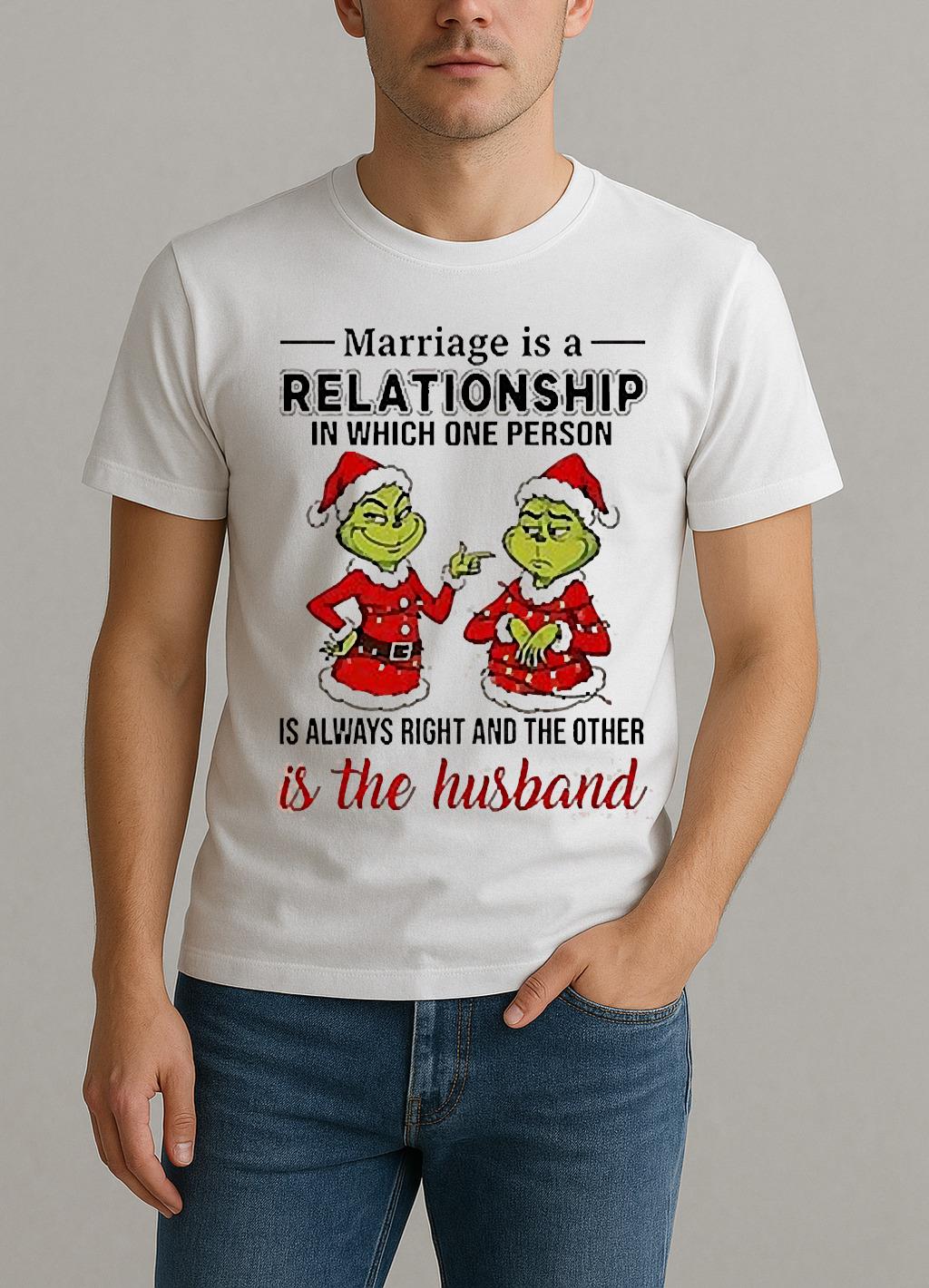 Marriage Is A Relationship In Which One Person Is Always Right And The Other Is The Husband Grinch Shirt
