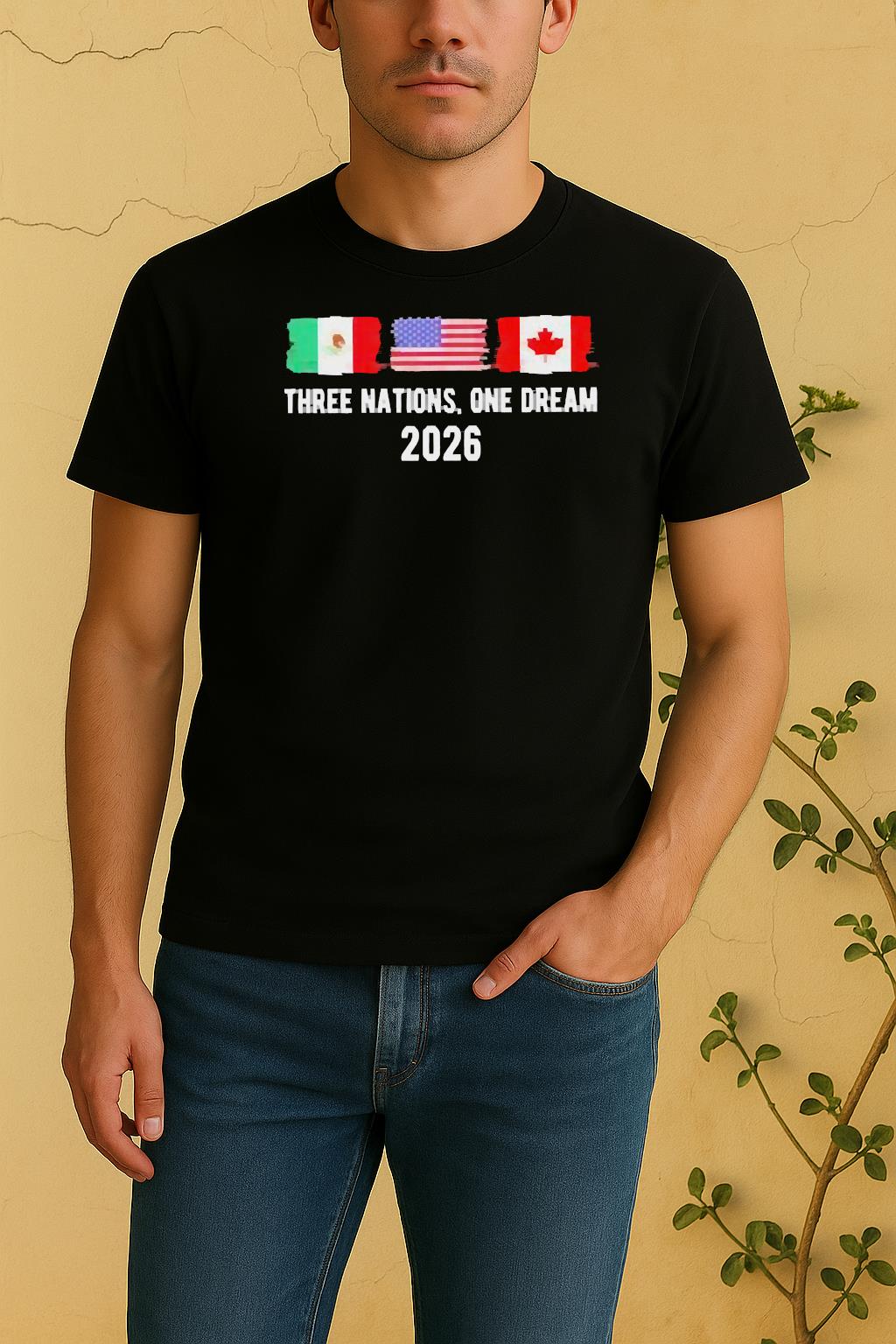 Whether you’re out with friends or capturing the perfect streetwear vibe, our Nice Three Nations One Dream 2026 International Soccer Tournament Flags Shirt combines effortless style with modern attitude, letting you stand out, stay comfortable, and make every moment your own. Use coupon “10OFF” to get 10% off total order value if over 75 USD.