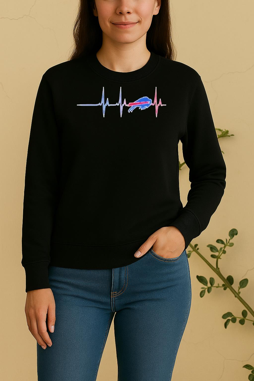 Pair your Official Buffalo Bills Nfl Heartbeat Shirt with jeans, joggers, or a jacket for a trendy, effortless look. Perfect for casual outings, creative events, or as a thoughtful gift for a fashion-forward friend.