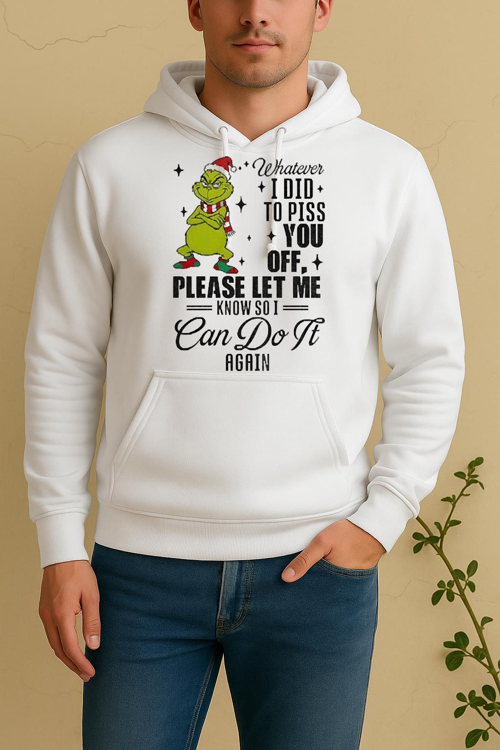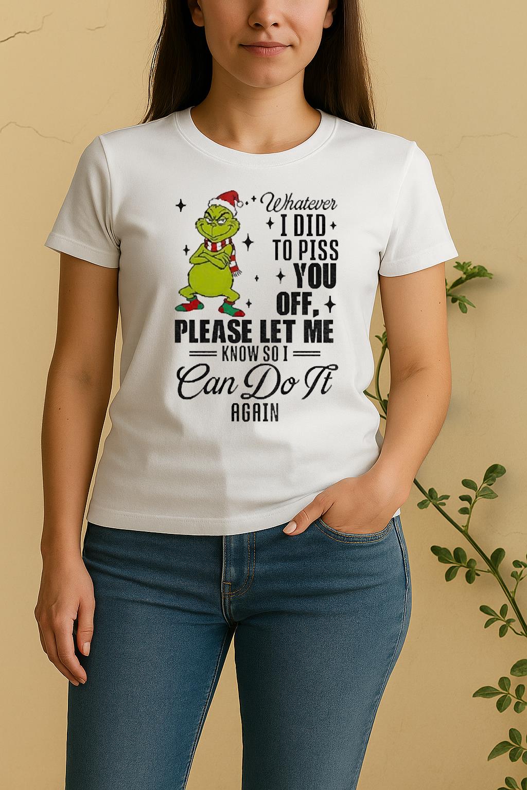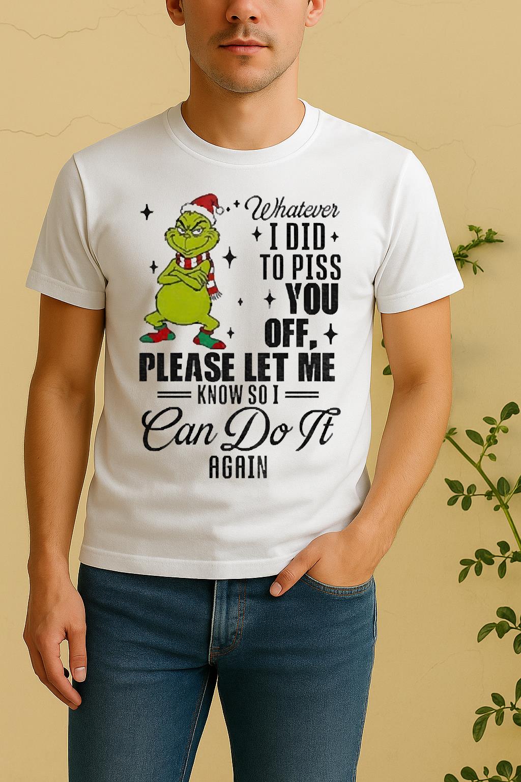 The Official Grinch Santa Whatever I Did To Piss You Off Please Let Me Know So I Can Do It Again Christmas Shirt from Bino Shirt is a perfect combination of creativity, comfort, and everyday wearability. Designed for fashion lovers who value self-expression, this t-shirt blends modern streetwear aesthetics with premium craftsmanship. Whether you’re going out, relaxing at home, or sharing your style online, the Official Grinch Santa Whatever I Did To Piss You Off Please Let Me Know So I Can Do It Again Christmas Shirt will help you stand out effortlessly.