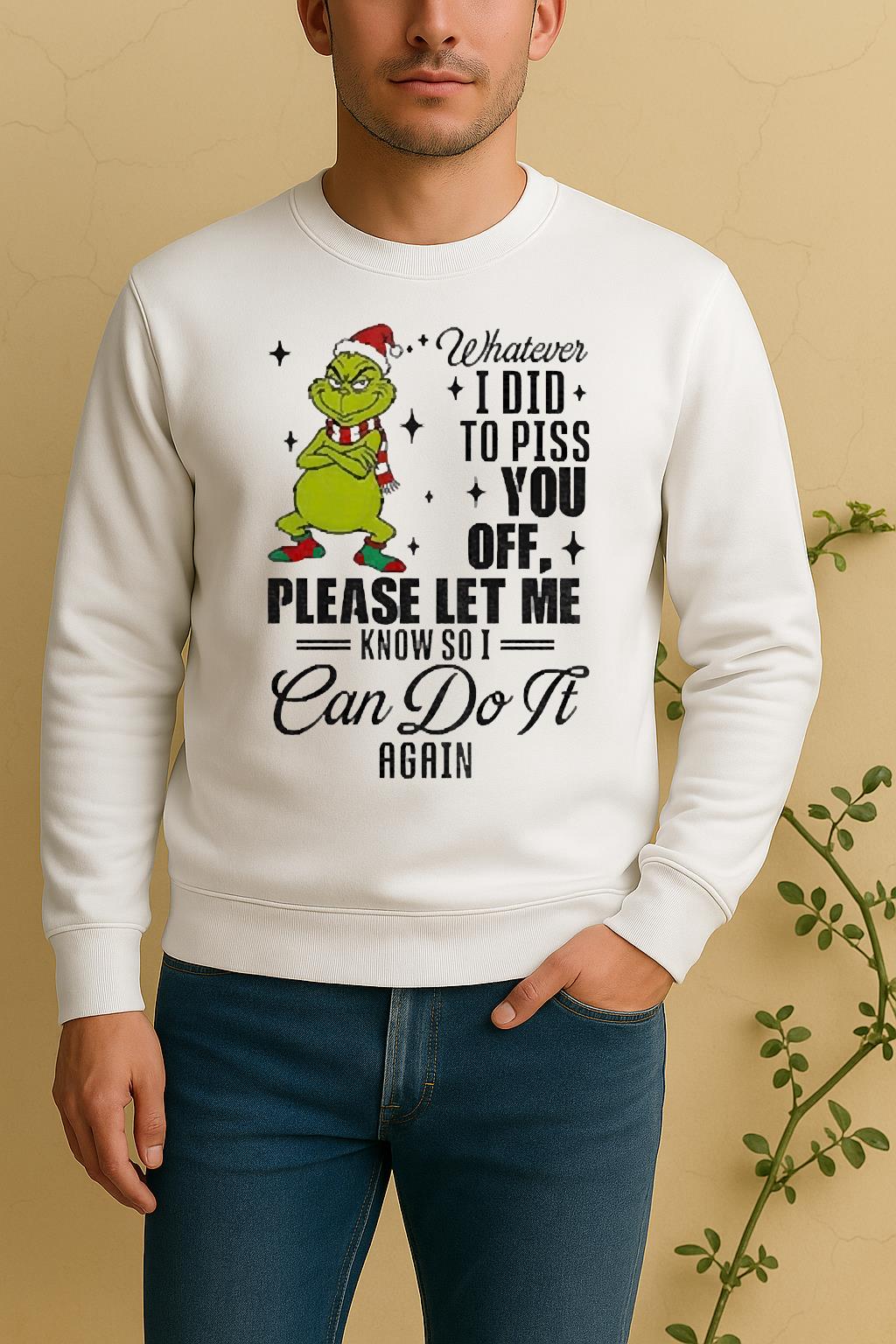 Official Grinch Santa Whatever I Did To Piss You Off Please Let Me Know So I Can Do It Again Christmas Shirt – Where Comfort Meets Creativity