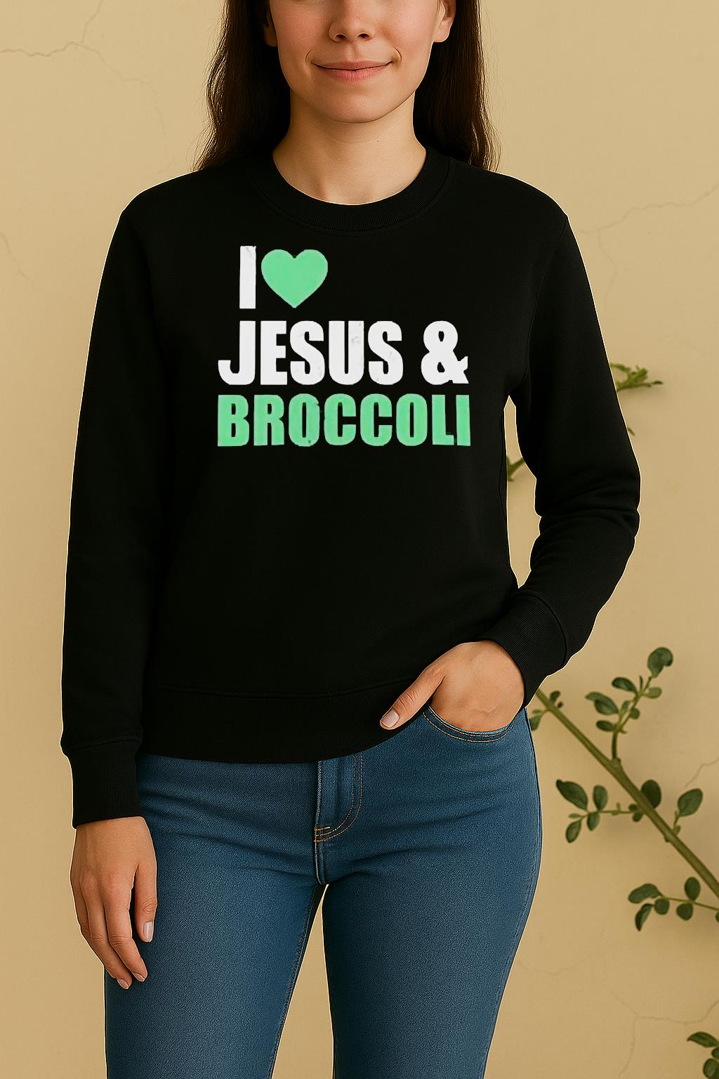 Pair your Official I Love Jesus And Broccoli Shirt with jeans, joggers, or a jacket for a trendy, effortless look. Perfect for casual outings, creative events, or as a thoughtful gift for a fashion-forward friend.
