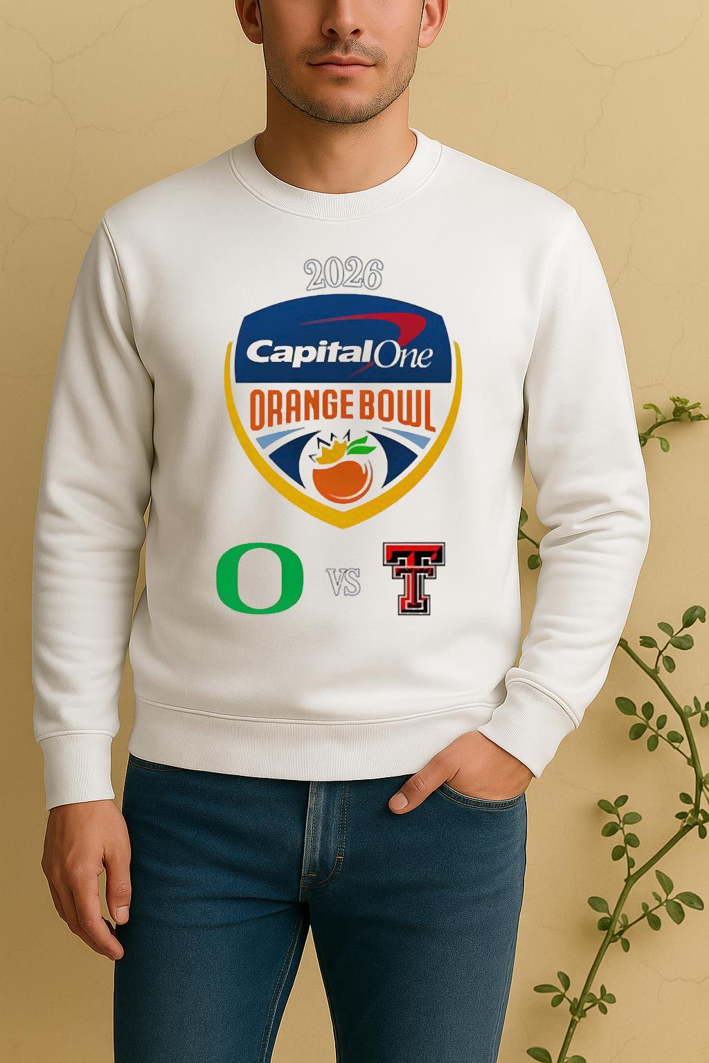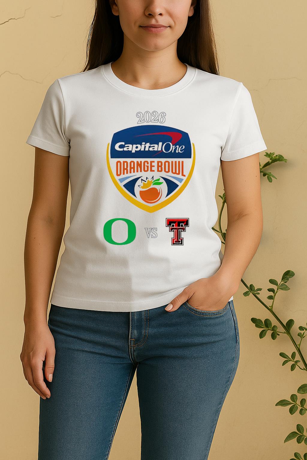 Official Oregon Ducks Vs Texas Tech Red Raiders 2026 One Orange Bowl Cfp Quarterfinal Hard Rock Stadium Miami Gardens Fl January 1 2026 Shirt