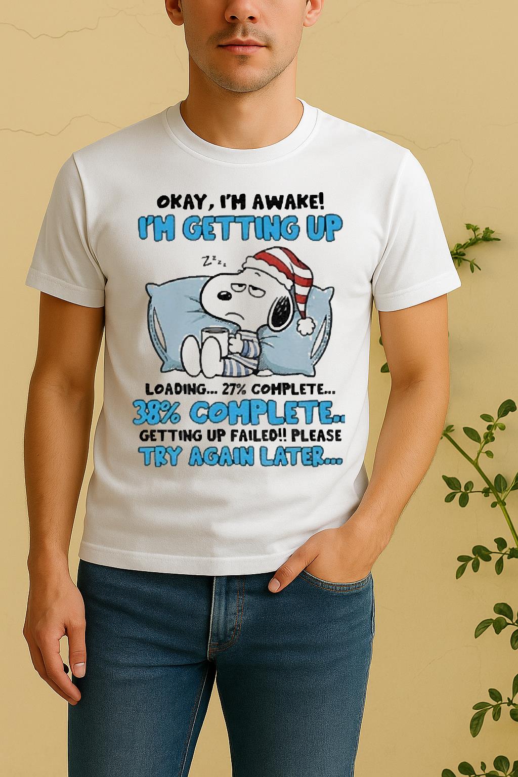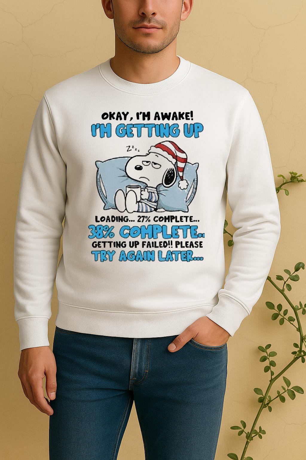 Official Snoopy Santa Okay Im Awake Im Getting Up Loading 27 Complete 38 Complete Getting Up Failed Shirt – Where Comfort Meets Creativity
