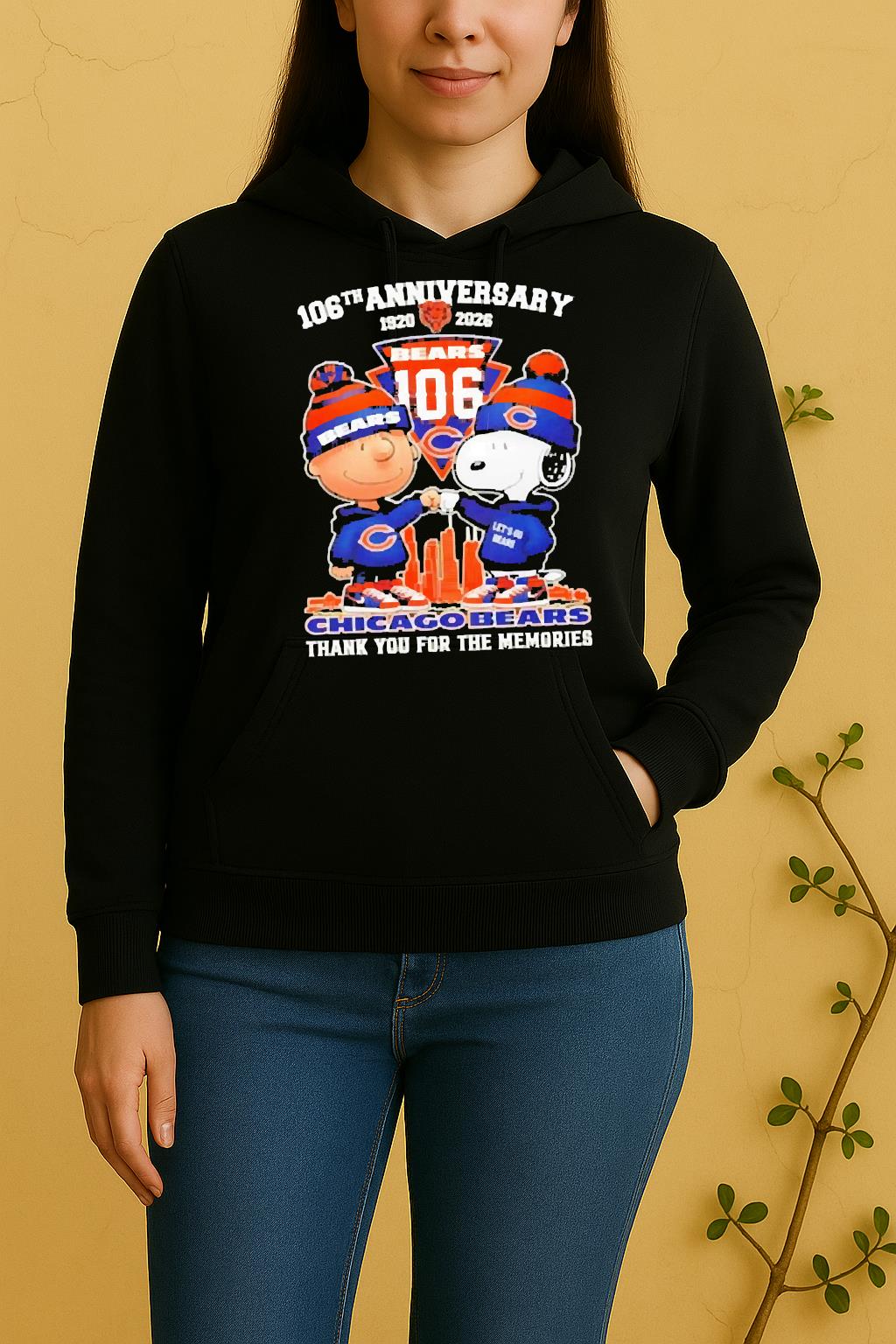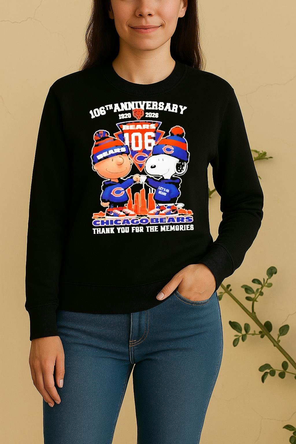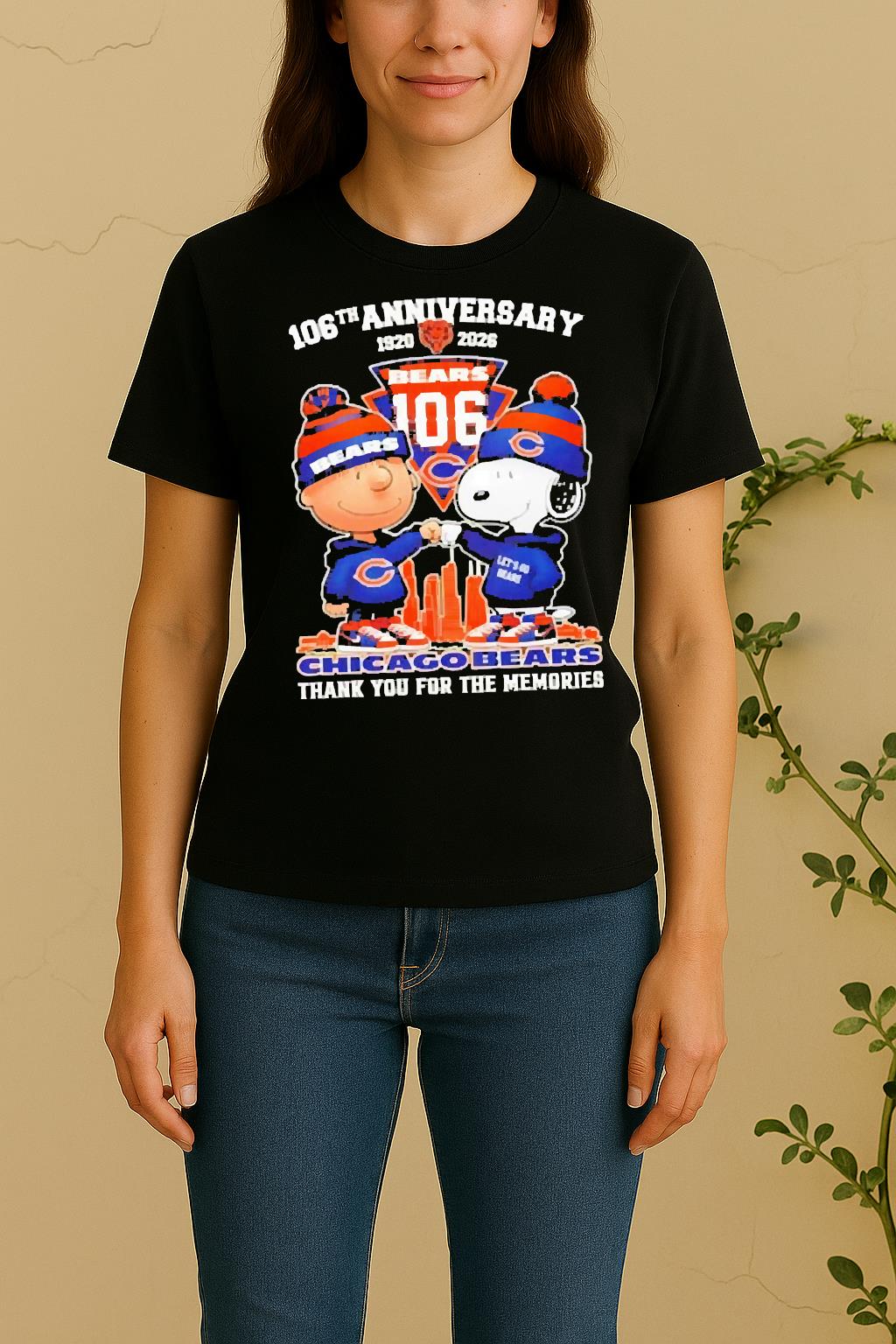 Pair your Officials Charlie Brown Fist Bump Snoopy 106Th Anniversary 1920 2026 Chicago Bears Thank You For The Memories Skyline Shirt with jeans, joggers, or a jacket for a trendy, effortless look. Perfect for casual outings, creative events, or as a thoughtful gift for a fashion-forward friend.