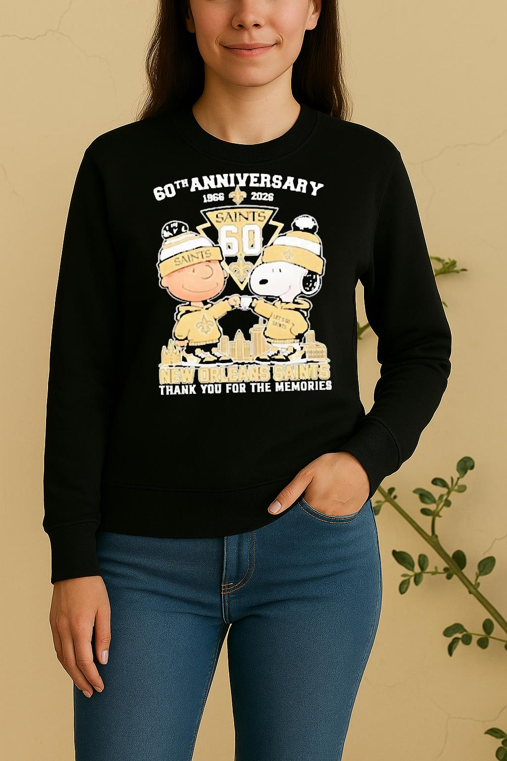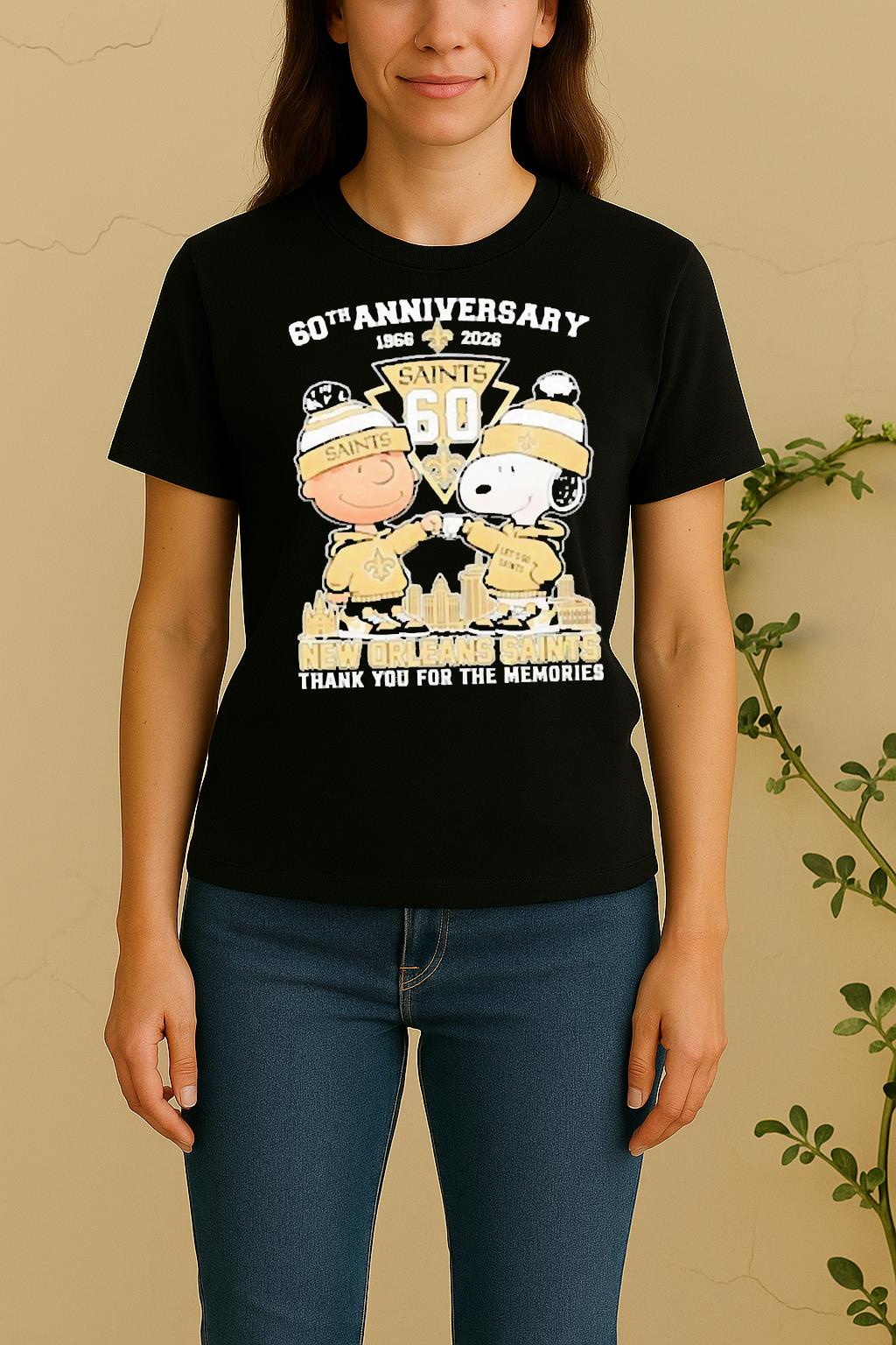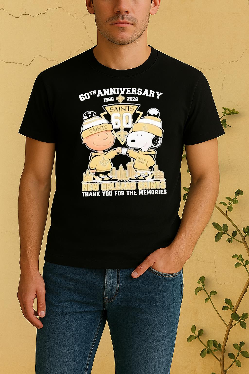 Officials Charlie Brown Fist Bump Snoopy 60Th Anniversary 1966 2026 New Orleans Saints Thank You For The Memories Skyline Shirt – Where Comfort Meets Creativity
