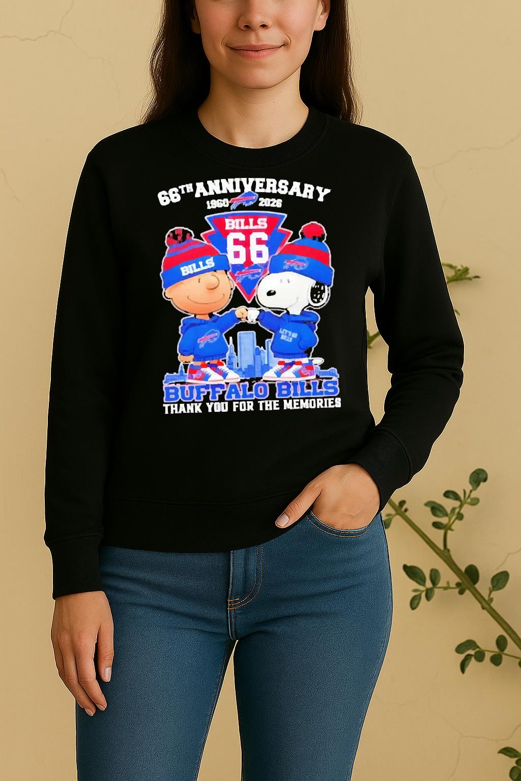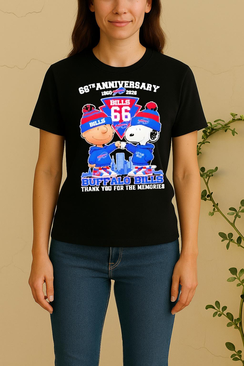Each Officials Charlie Brown Fist Bump Snoopy 66Th Anniversary 1960 2026 Buffalo Bills Thank You For The Memories Skyline Shirt is made from soft, breathable cotton and a durable fabric blend that feels gentle on the skin. The high-quality print ensures vibrant colors that won’t fade after washing. Lightweight, flexible, and built for comfort — ideal for all-day wear.