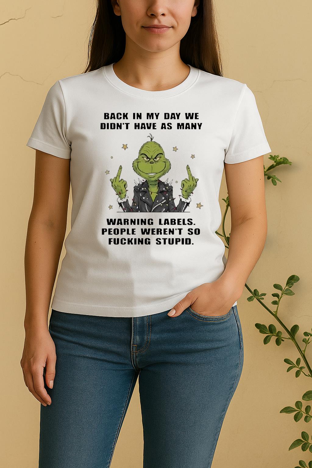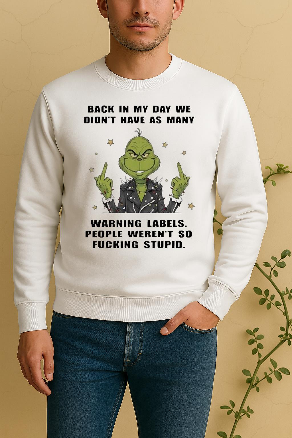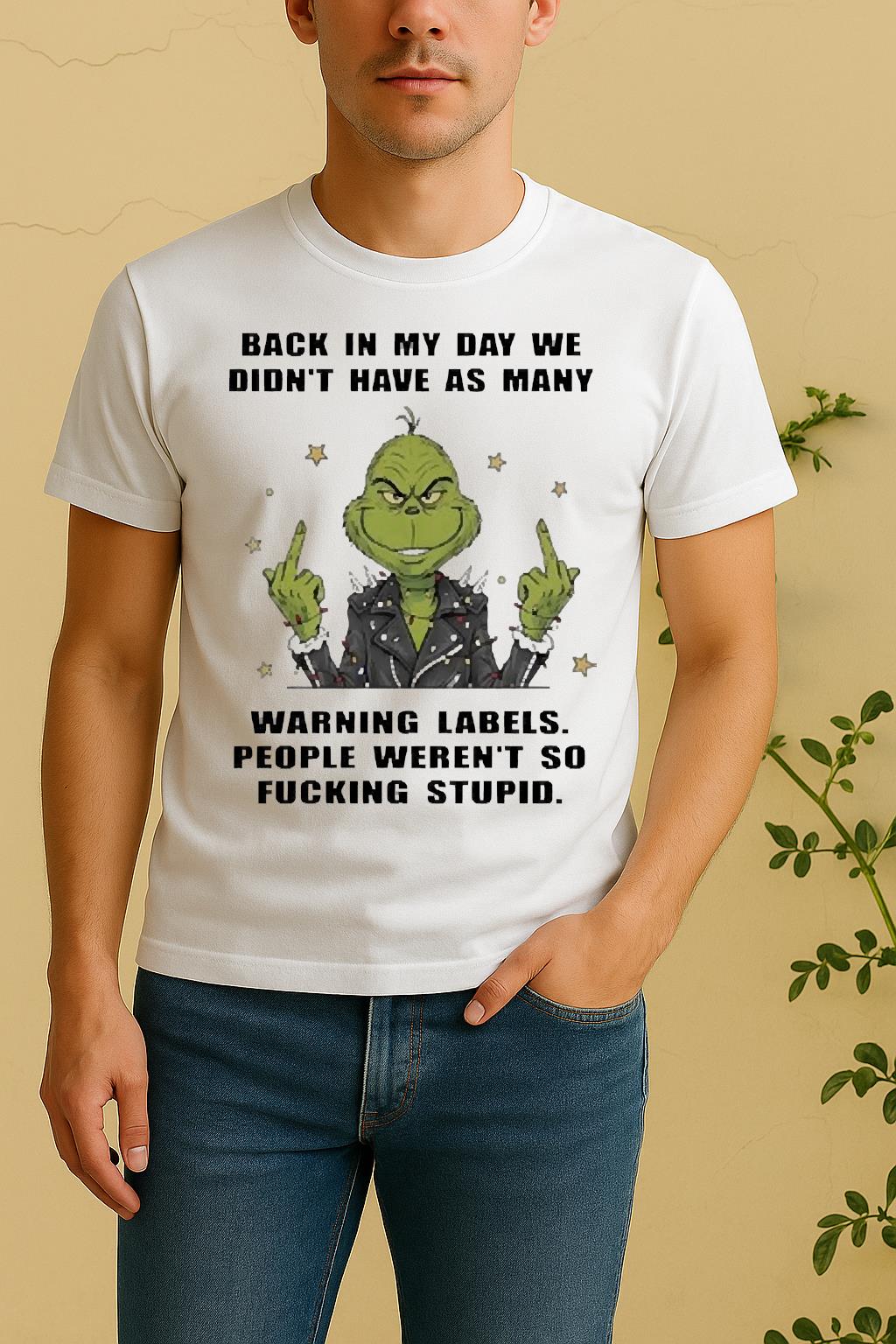 Officials Grinch People Werent So Fucking Stupid Back In My Day We Didnt Have As Many Warning Labels Shirt