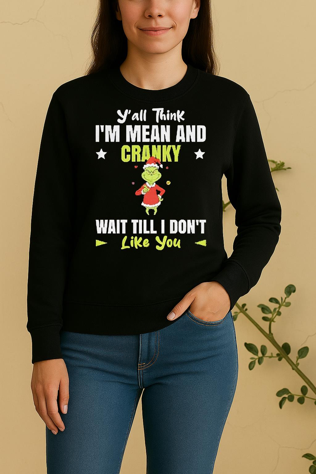 The standout feature of the Officials Grinch Santa Yall Think Im Mean And Cranky Wait Till I Dont Like You Christmas Shirt is its exclusive custom artwork, printed with eco-friendly inks to ensure long-lasting vibrancy and detail. Every element reflects confidence, creativity, and individuality.