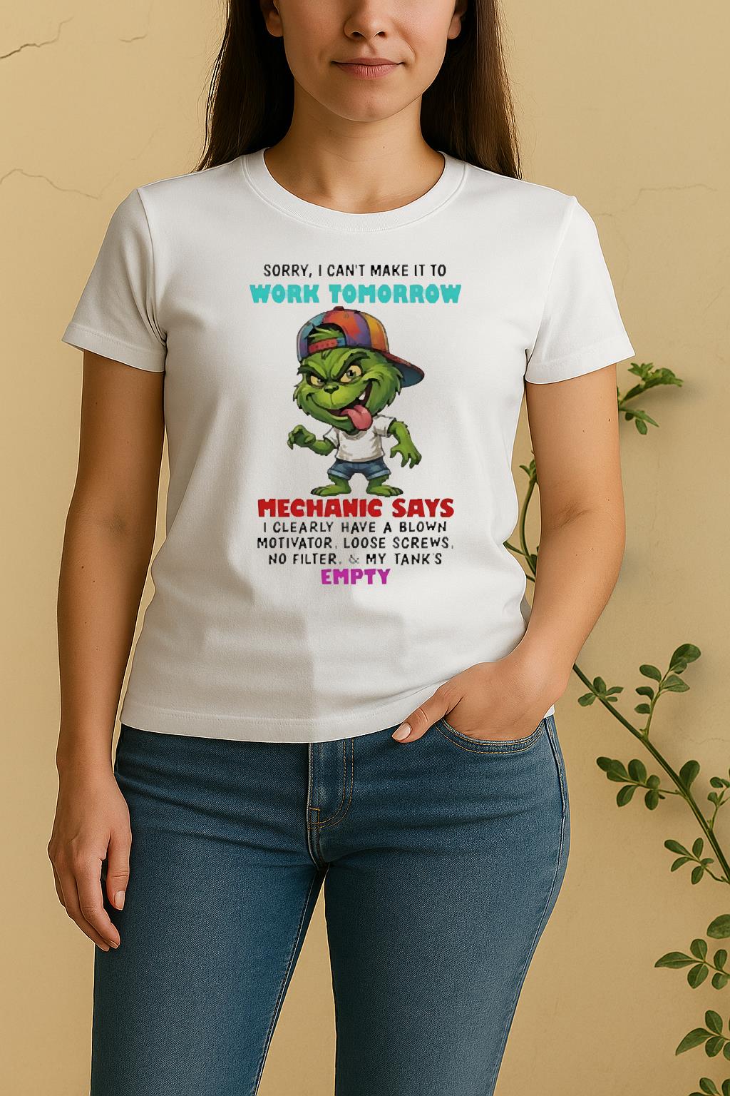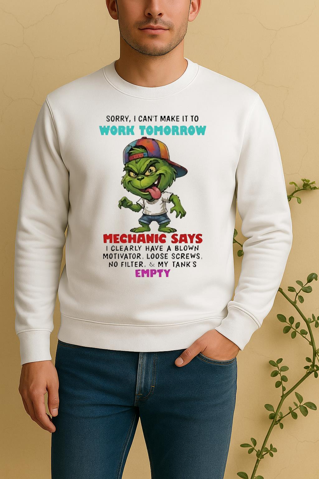 Officials Grinch Sorry I Cant Make It To Work Tomorrow Mechanic Says Shirt – Where Comfort Meets Creativity