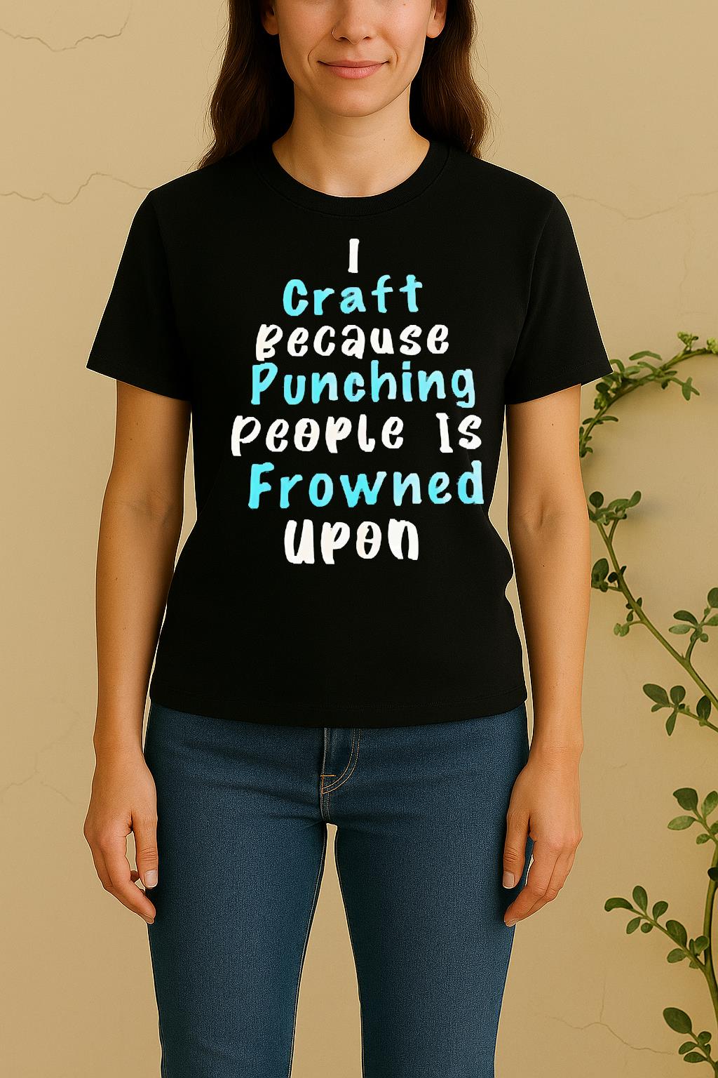 The standout feature of the Officials I Craft Because Punching People Is Frowned Upon Shirt is its exclusive custom artwork, printed with eco-friendly inks to ensure long-lasting vibrancy and detail. Every element reflects confidence, creativity, and individuality.