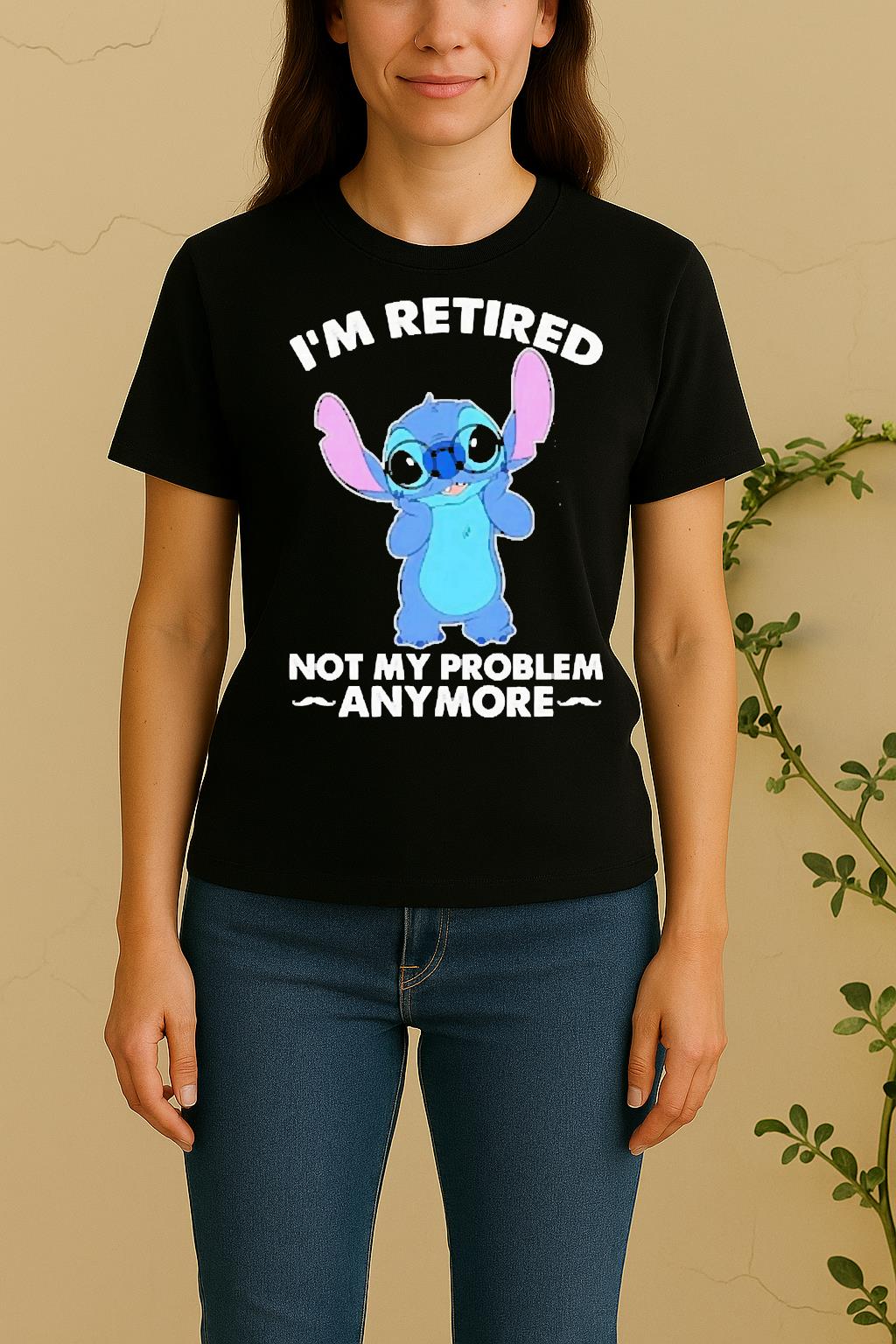 The standout feature of the Officials Stitch Im Retired Not My Problem Anymore Shirt is its exclusive custom artwork, printed with eco-friendly inks to ensure long-lasting vibrancy and detail. Every element reflects confidence, creativity, and individuality.