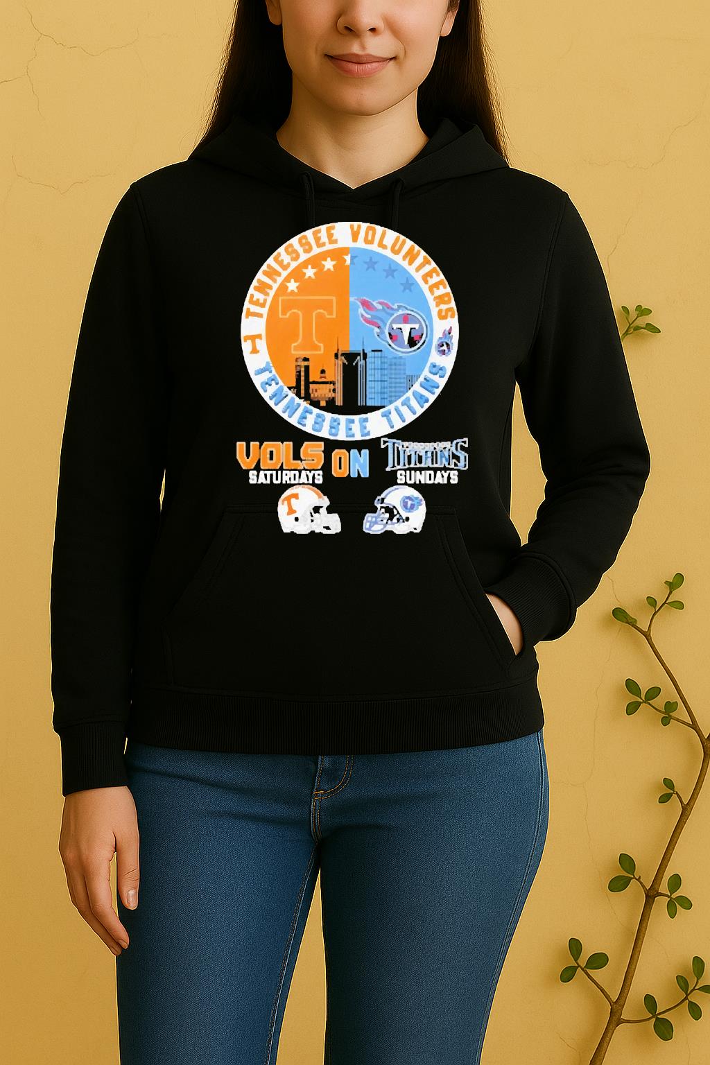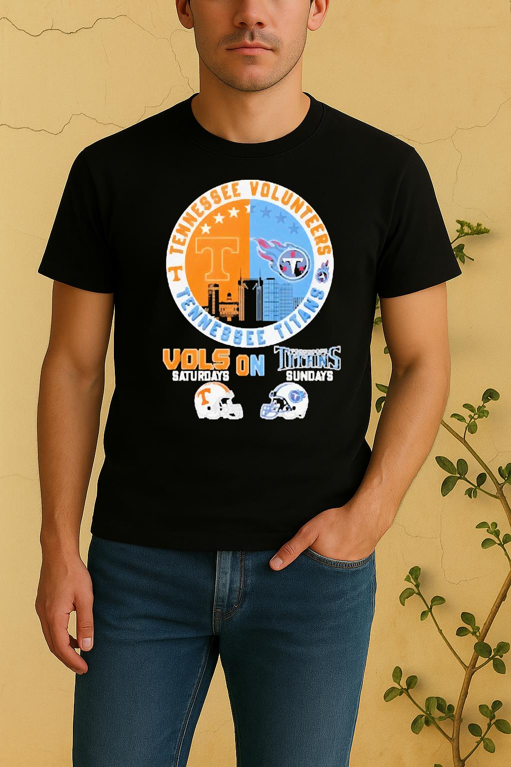 Whether you’re out with friends or capturing the perfect streetwear vibe, our Officials Tennessee Volunteers On Saturdays And Tennessee Titans On Sundays Helmet Logo Mashup Shirt combines effortless style with modern attitude, letting you stand out, stay comfortable, and make every moment your own. Use coupon “10OFF” to get 10% off total order value if over 75 USD.