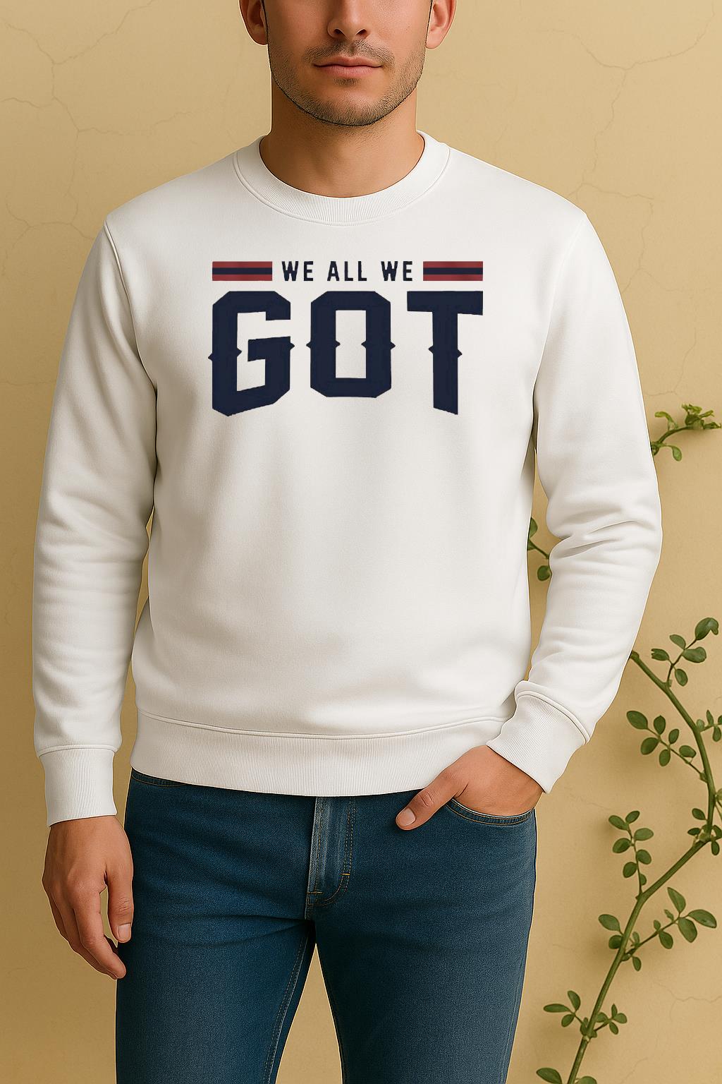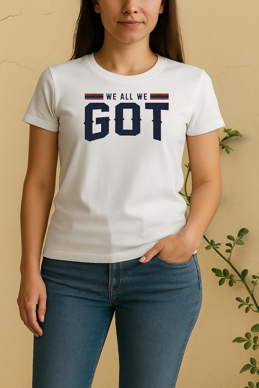 Whether you’re out with friends or capturing the perfect streetwear vibe, our Officials We All We Got New England Patriots Football 2026 Shirt combines effortless style with modern attitude, letting you stand out, stay comfortable, and make every moment your own. Use coupon “10OFF” to get 10% off total order value if over 75 USD.