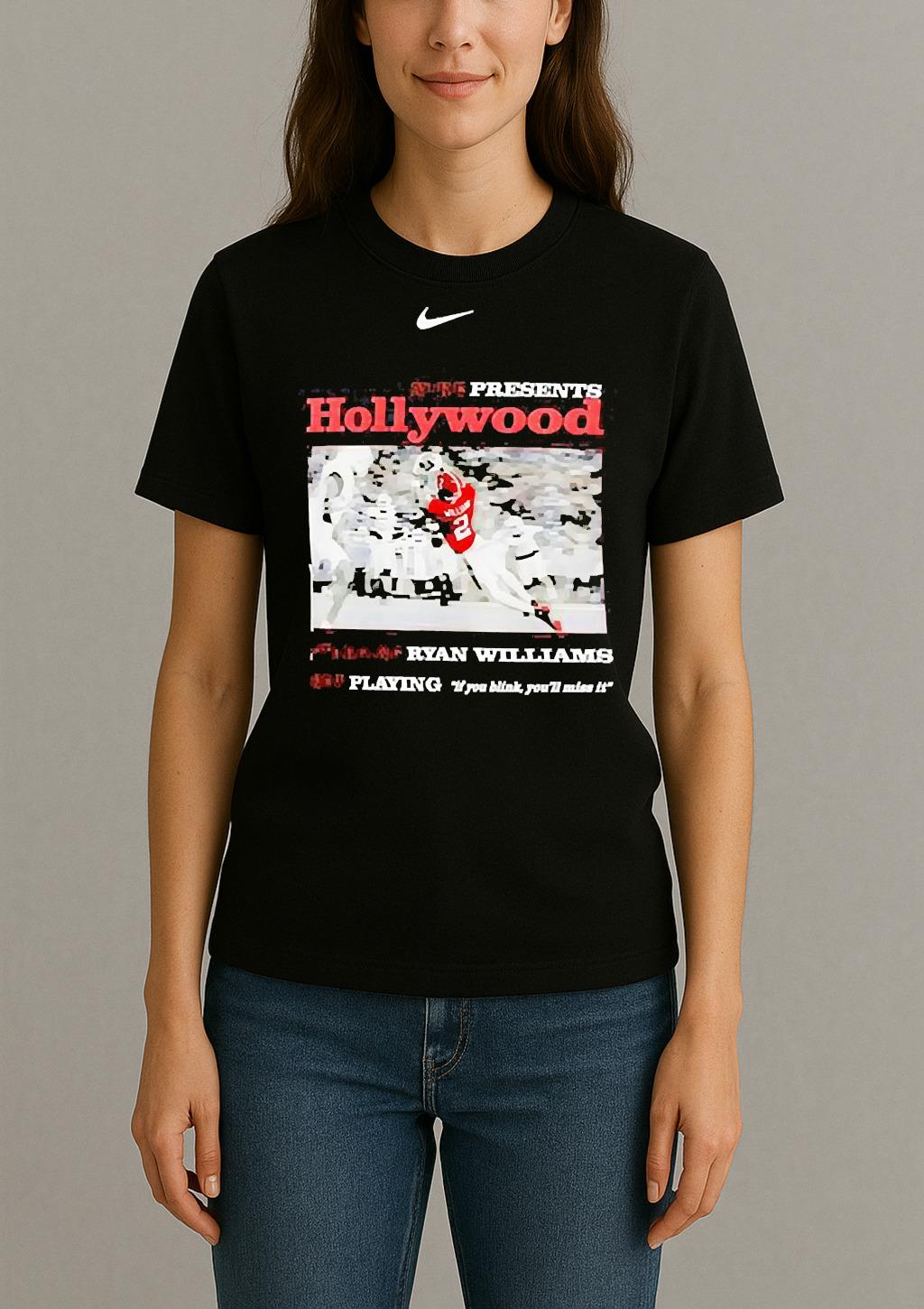 The standout feature of the Ryan Williams Alabama Crimson Tide Nike Presents Hollywood Shirt is its exclusive custom artwork, printed with eco-friendly inks to ensure long-lasting vibrancy and detail. Every element reflects confidence, creativity, and individuality.