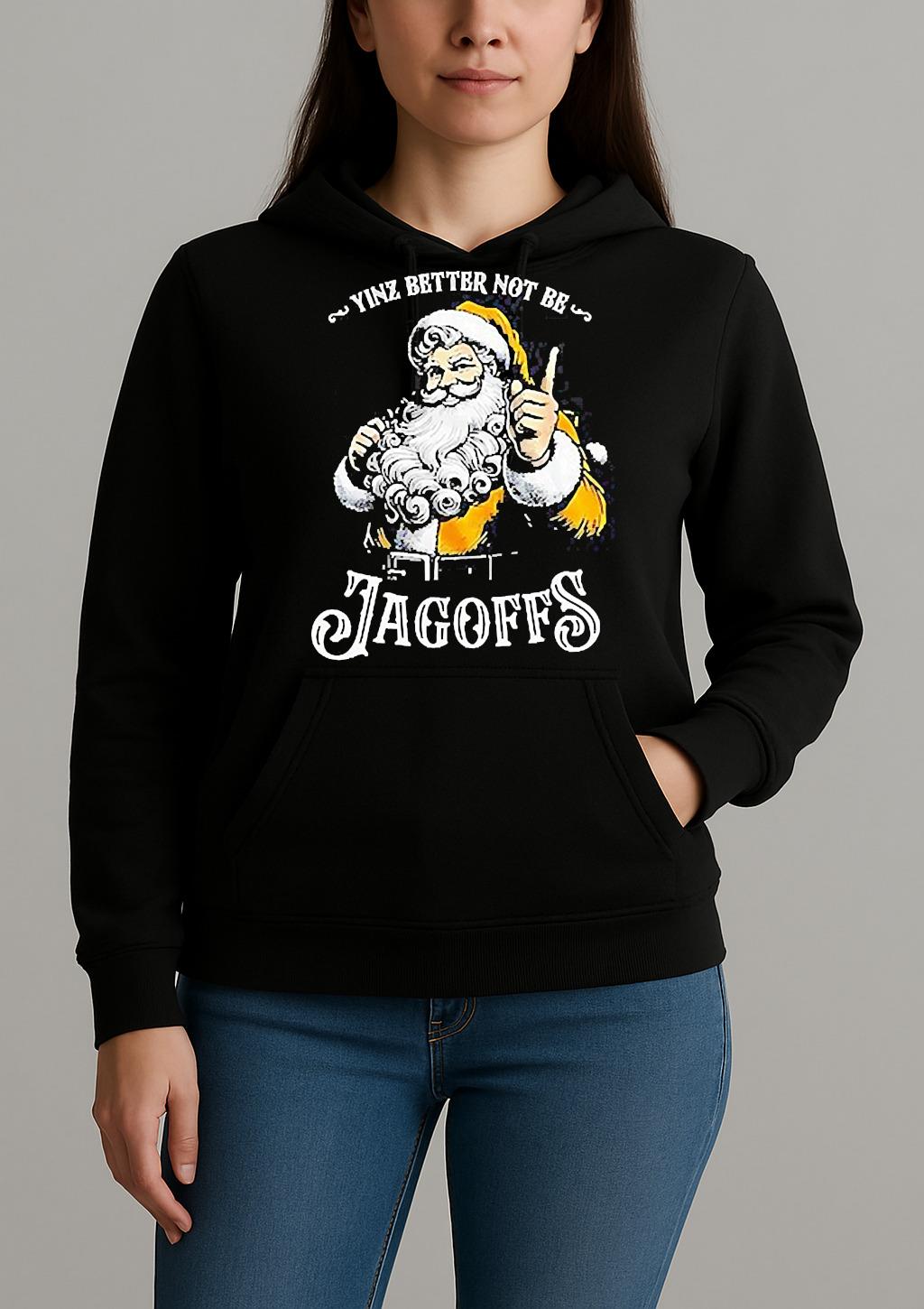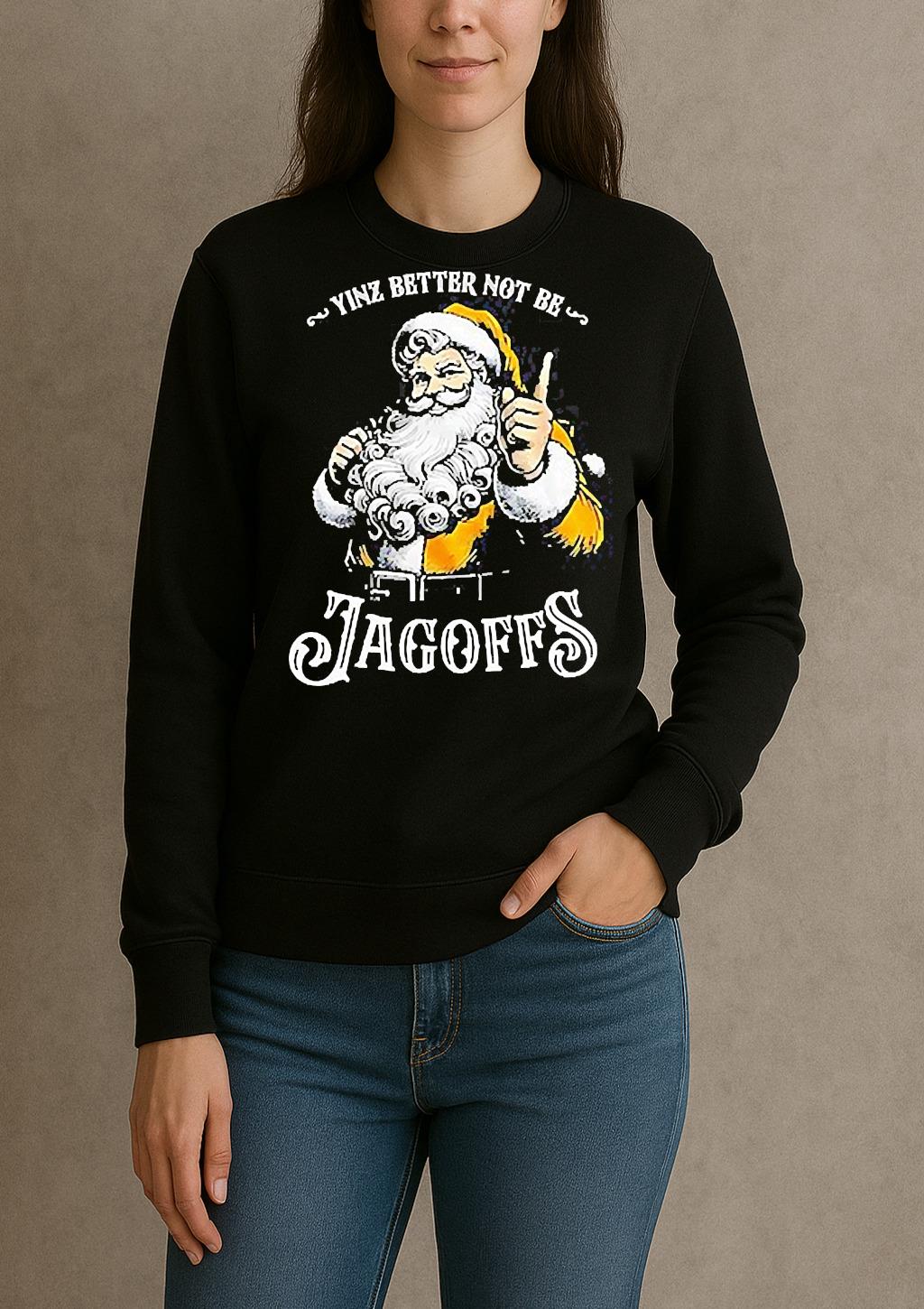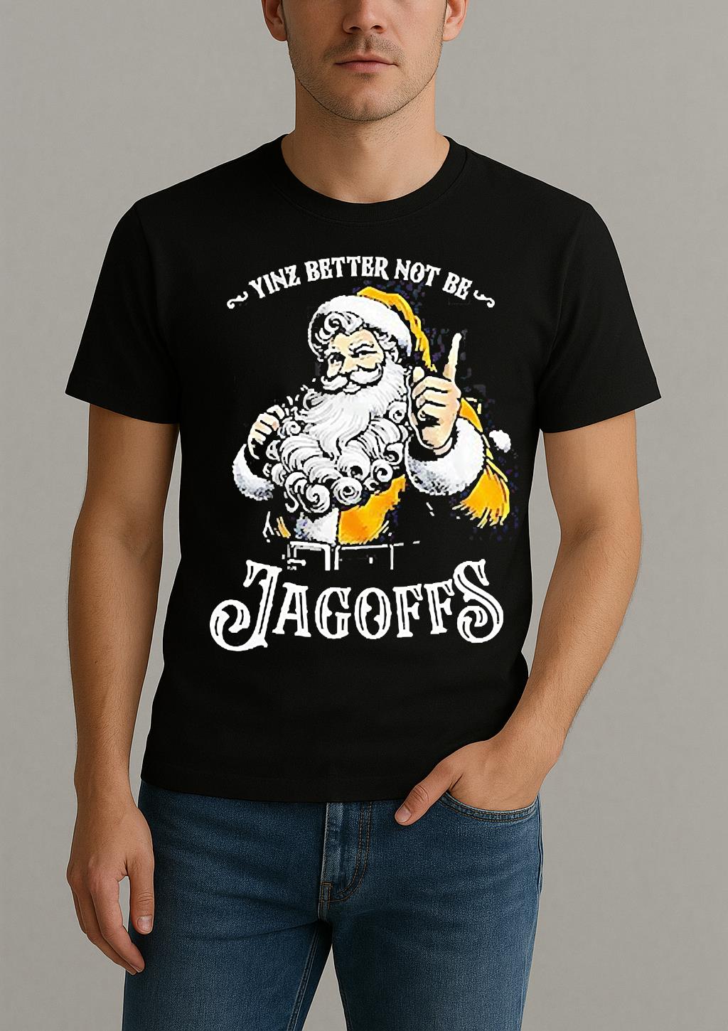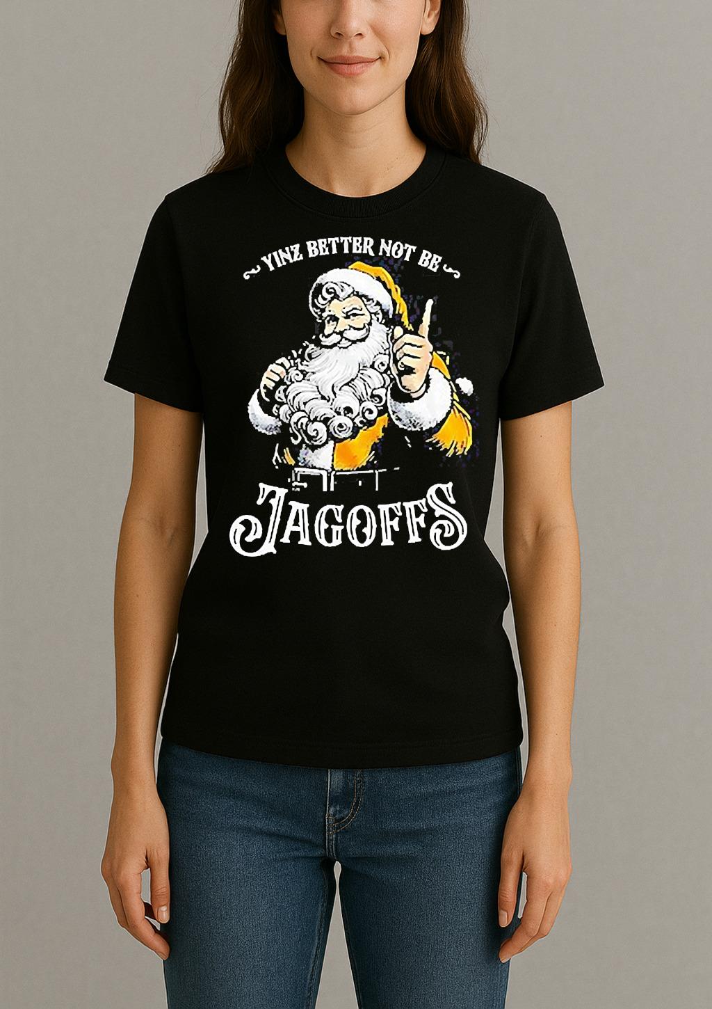 Pair your Santa Yinz Better Not Be Jagoffs Christmas Shirt with jeans, joggers, or a jacket for a trendy, effortless look. Perfect for casual outings, creative events, or as a thoughtful gift for a fashion-forward friend.