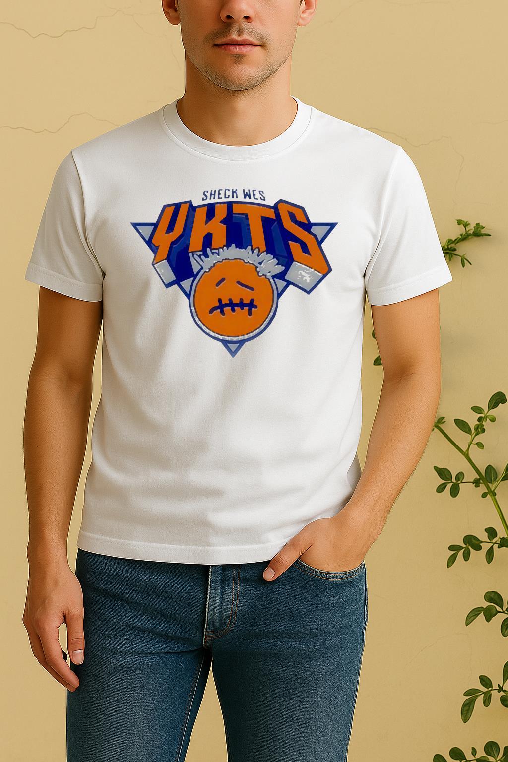 Pair your Sheck Wes Ykts New York Knicks Logo Parody Circle Shirt with jeans, joggers, or a jacket for a trendy, effortless look. Perfect for casual outings, creative events, or as a thoughtful gift for a fashion-forward friend.