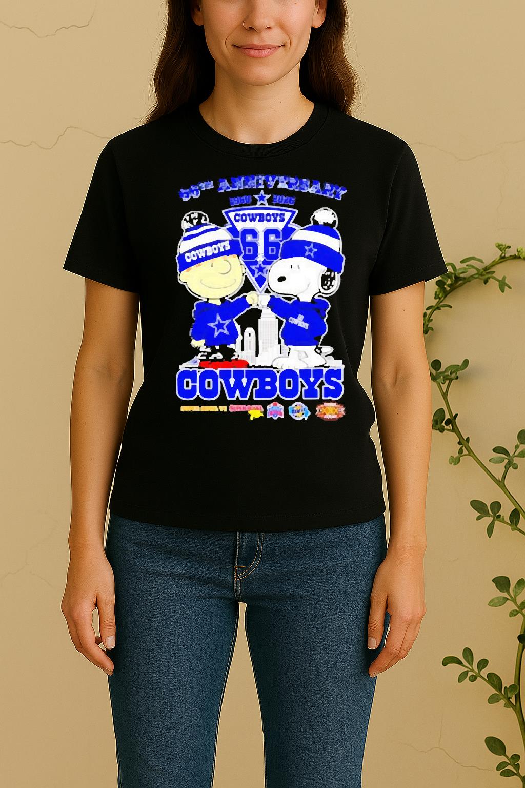 Each Snoopy And Charlie Brown Dallas Cowboys 66Th Anniversary Super Bowl Shirt is made from soft, breathable cotton and a durable fabric blend that feels gentle on the skin. The high-quality print ensures vibrant colors that won’t fade after washing. Lightweight, flexible, and built for comfort — ideal for all-day wear.