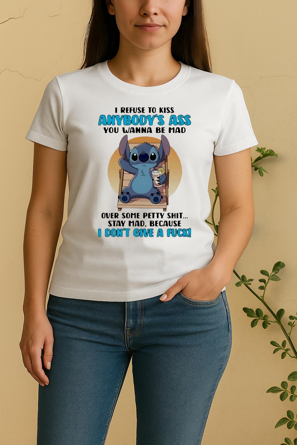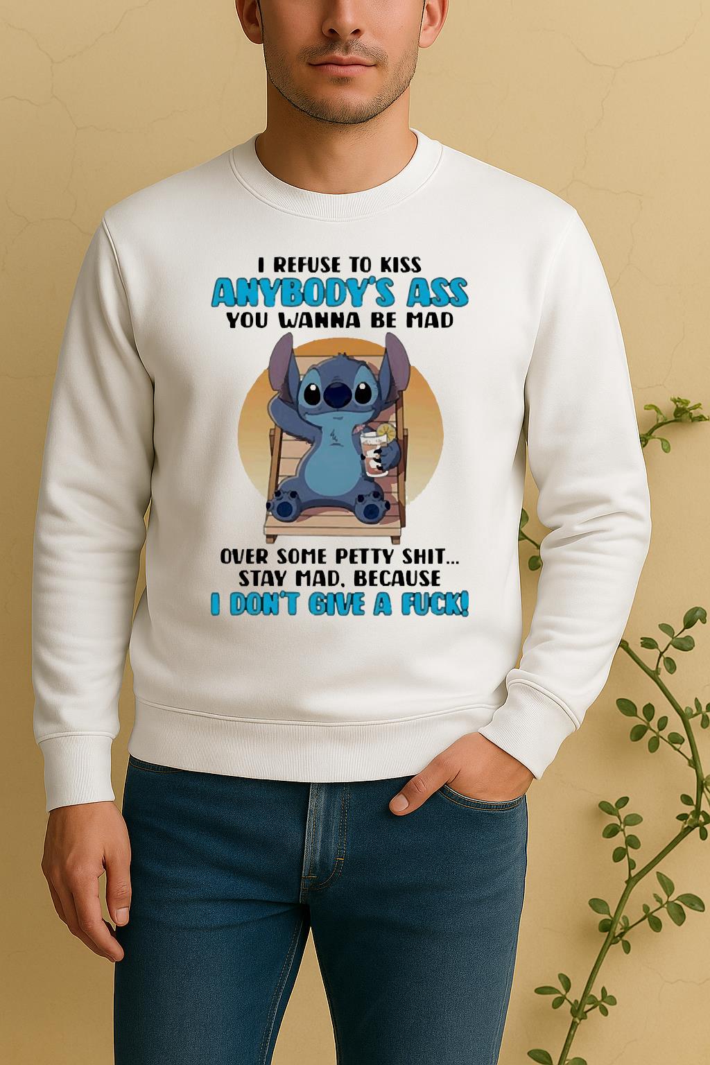 Whether you’re out with friends or capturing the perfect streetwear vibe, our Stitch I Refuse To Kiss Anybodys Ass You Wanna Be Mad Circle Shirt combines effortless style with modern attitude, letting you stand out, stay comfortable, and make every moment your own. Use coupon “10OFF” to get 10% off total order value if over 75 USD.