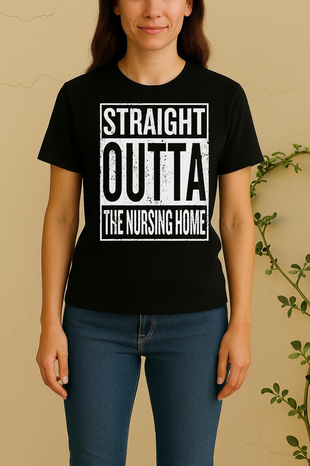 The standout feature of the Straight Outta The Nursing Home Sign Shirt is its exclusive custom artwork, printed with eco-friendly inks to ensure long-lasting vibrancy and detail. Every element reflects confidence, creativity, and individuality.