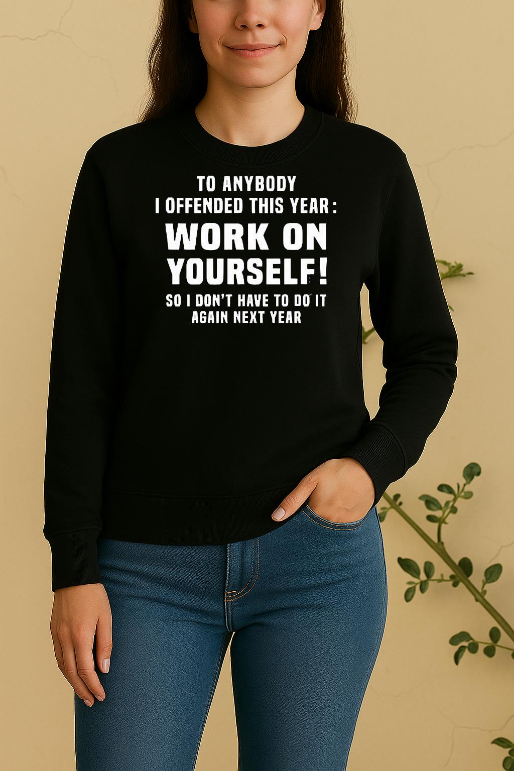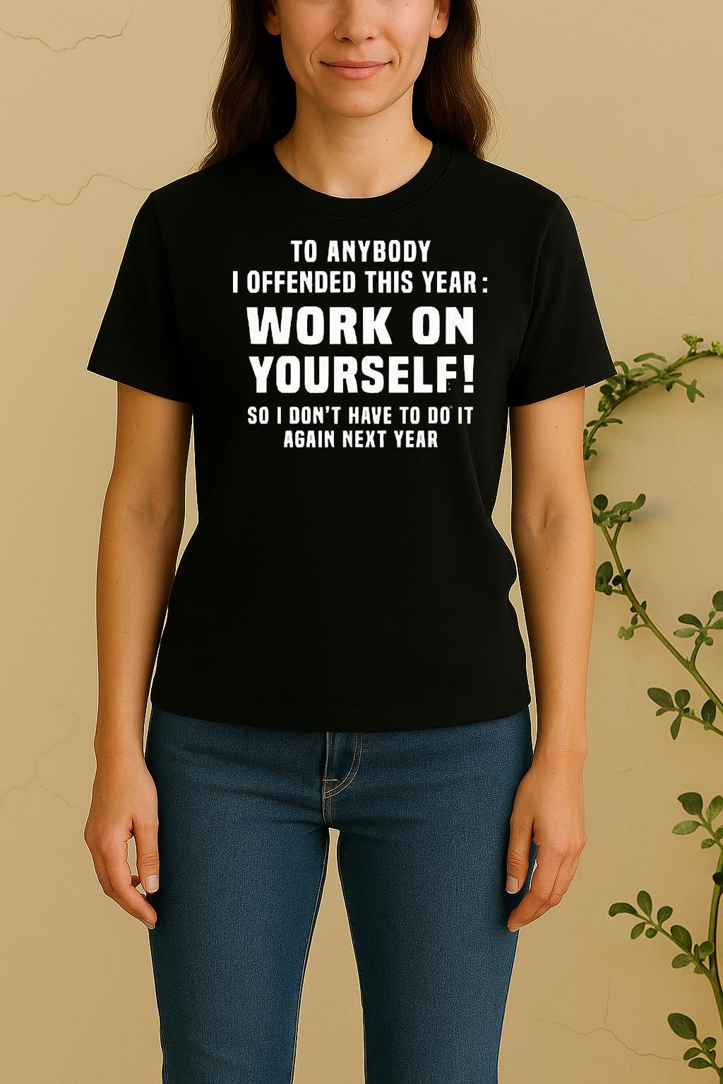 To Anybody I Offended This Year Work On Yourself So I Dont Have To Do It Again Next Year Shirt – Where Comfort Meets Creativity