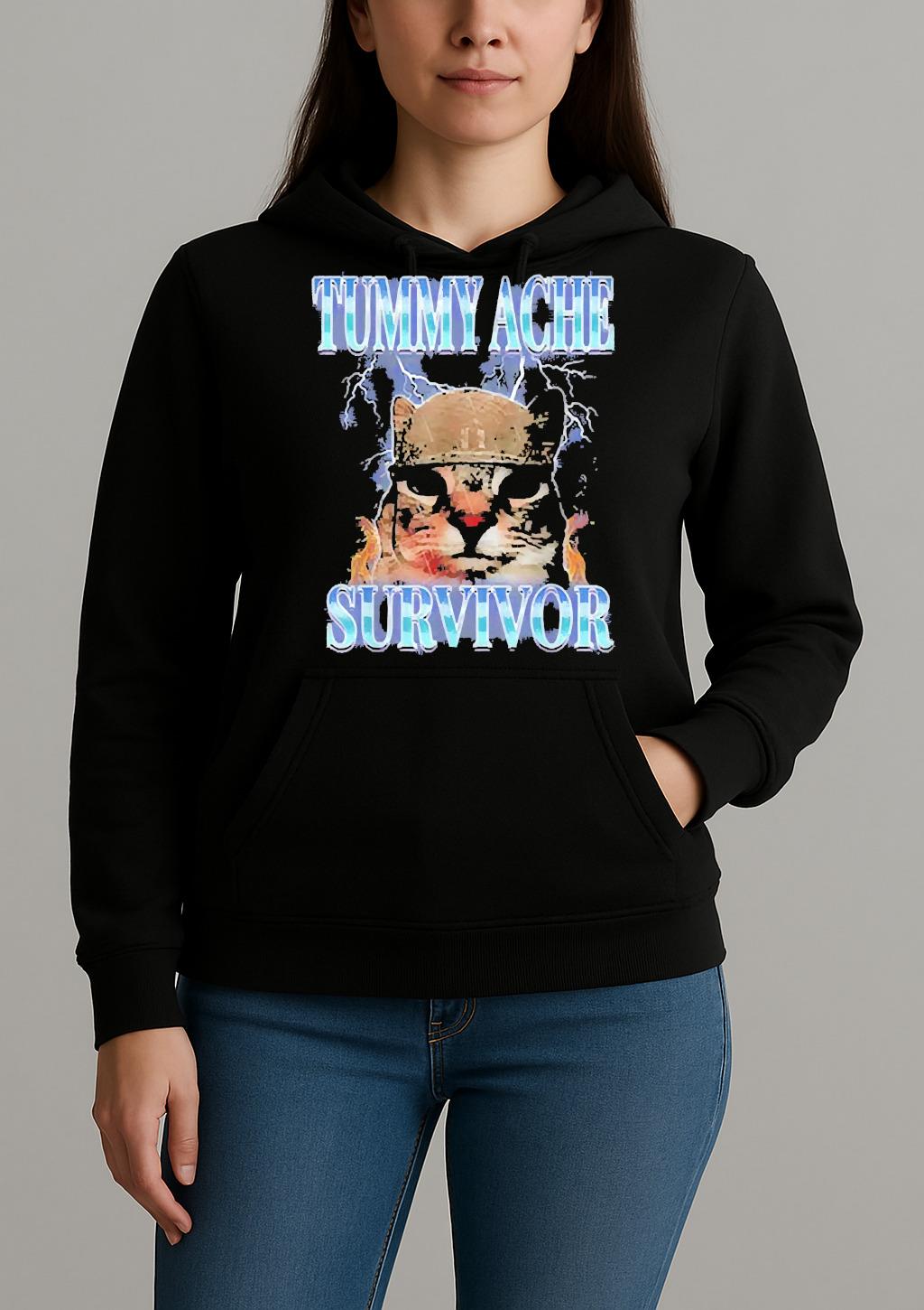 Don’t miss out on owning the Tummy Ache Survivor Cat Meme Funny Shirt — available exclusively at Bino Shirt.